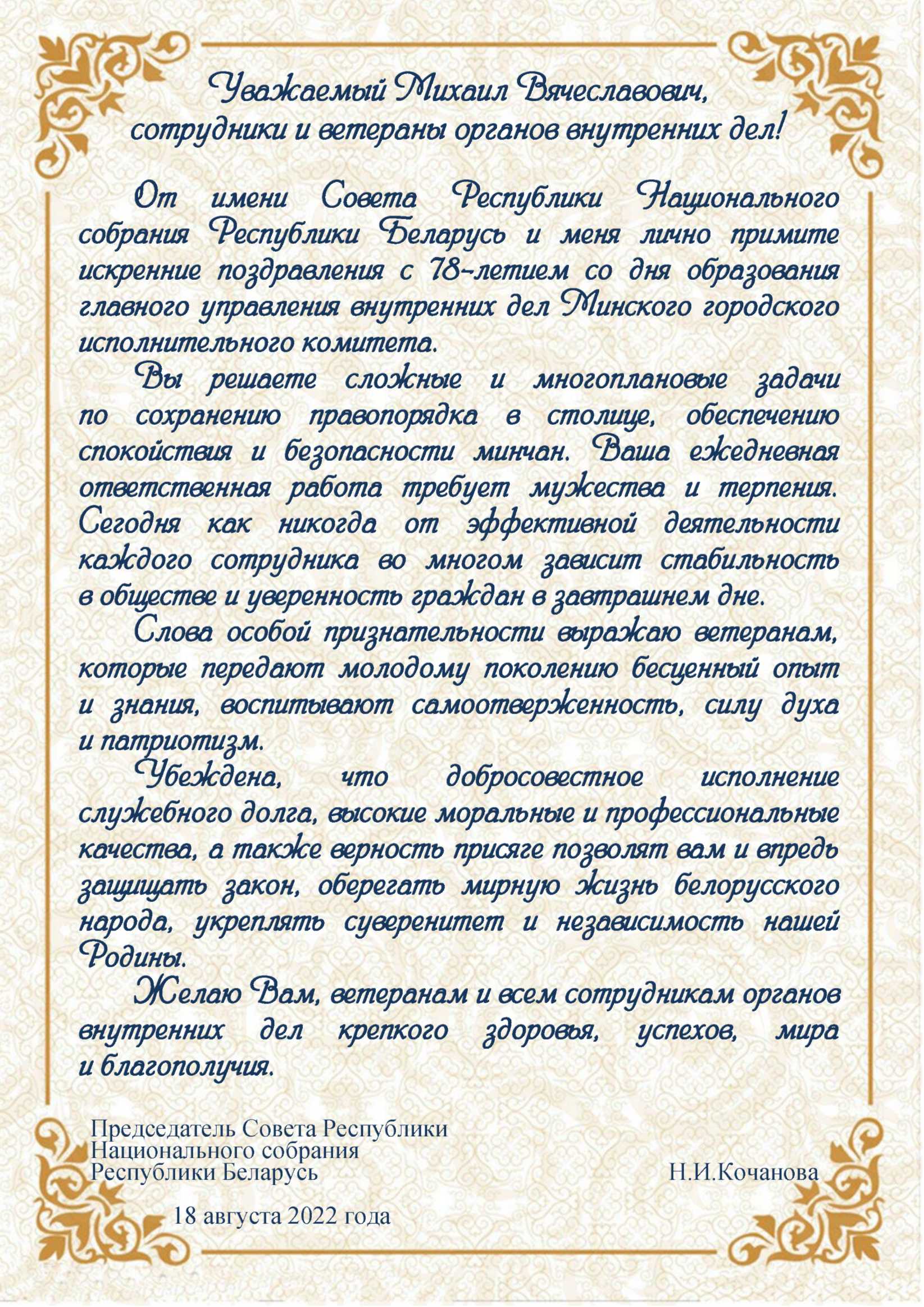 С 78-летием со дня образования главного управления внутренних дел Минского городского исполнительного комитета!