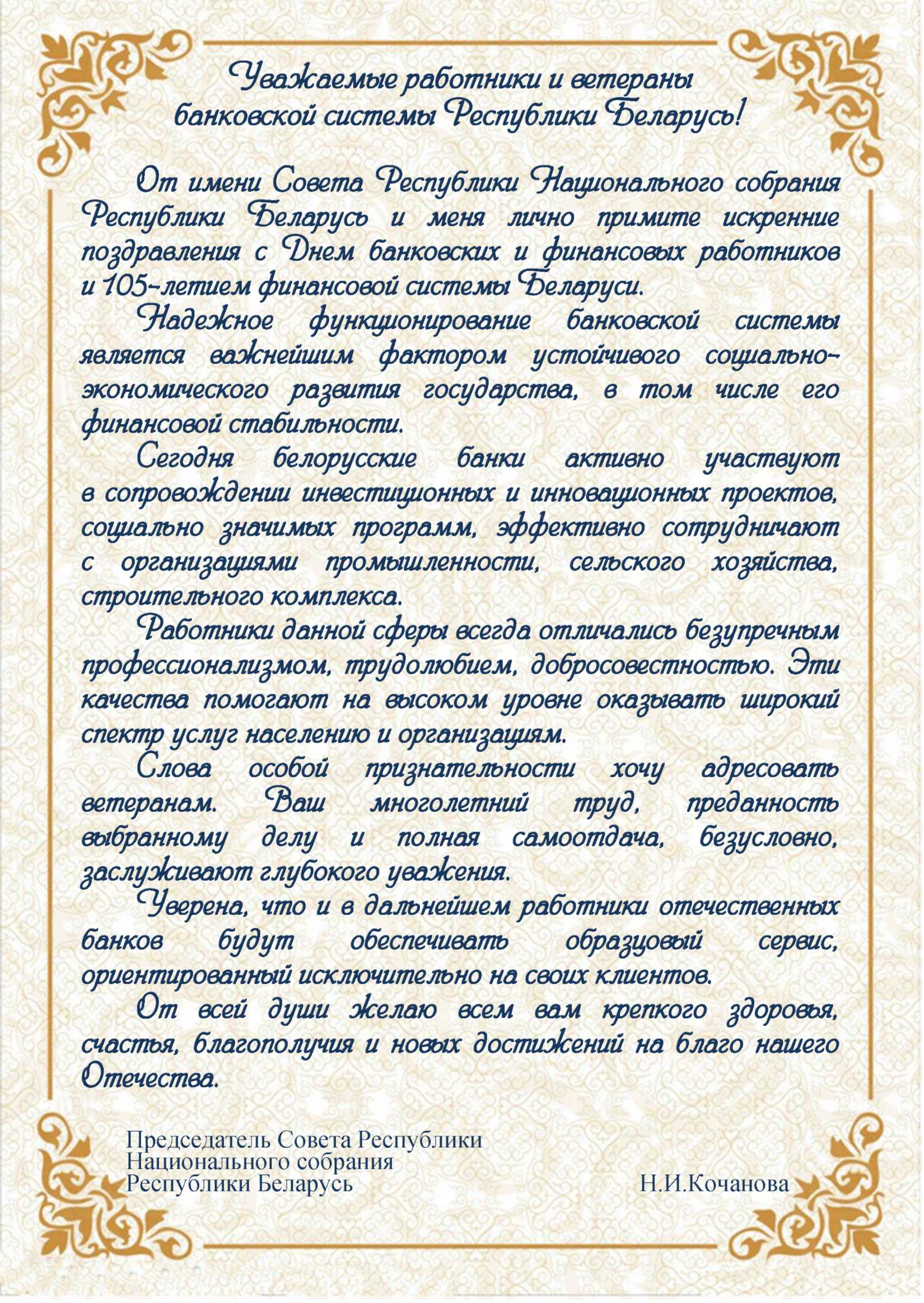 С Днем банковских и финансовых работников и 105-летием финансовой системы Беларуси!