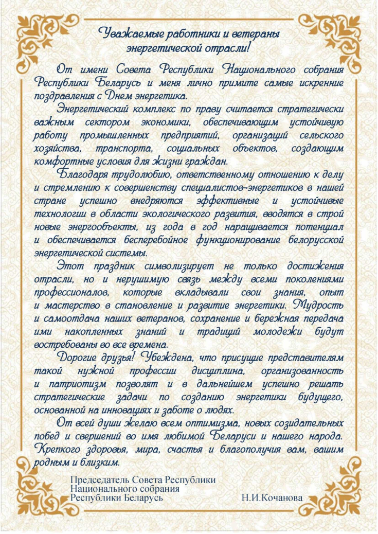 Председатель Совета Республики Н.Кочанова направила поздравления Председателю Совета Шуры Национальной ассамблеи Королевства Бахрейн