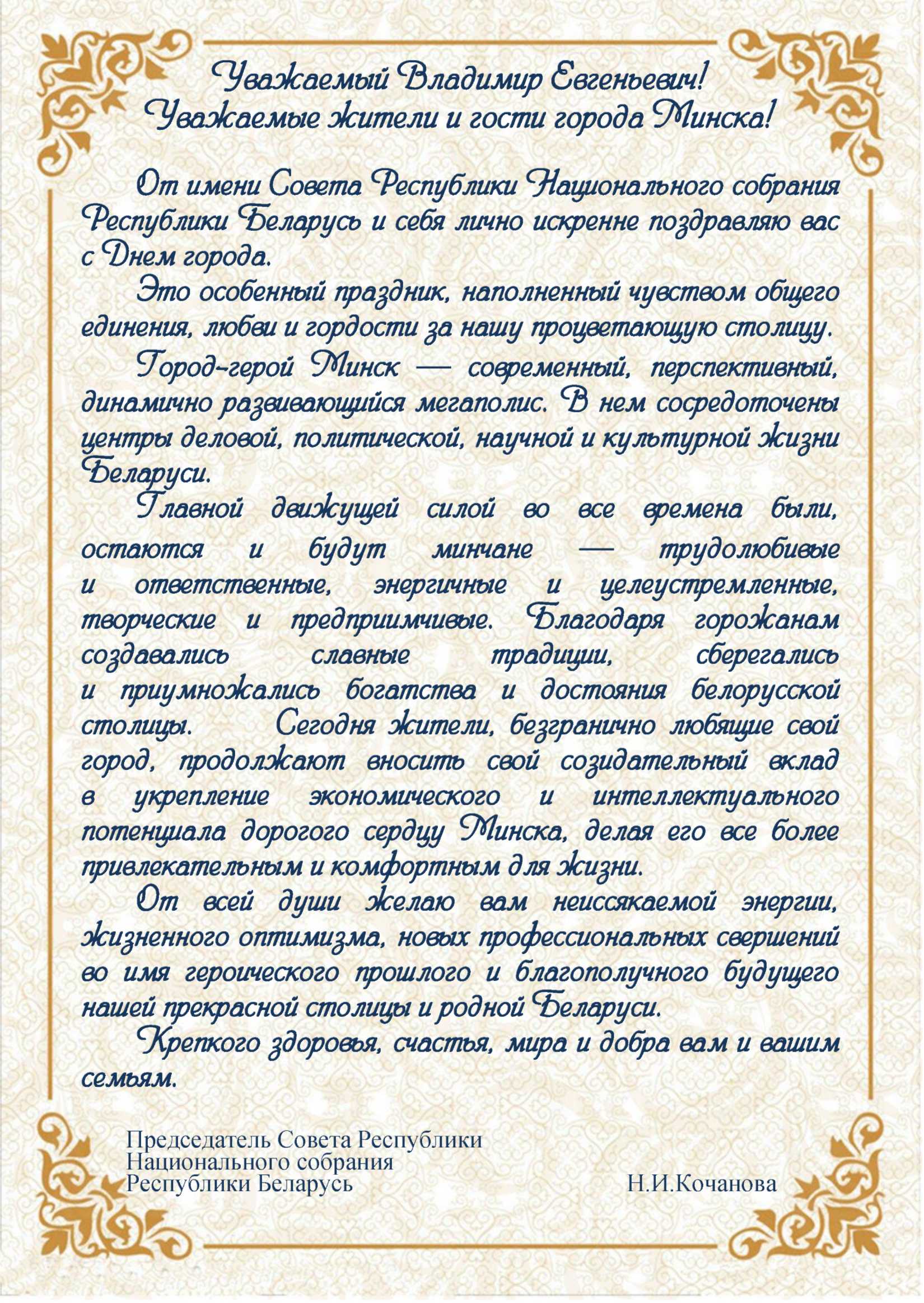 Председатель Совета Республики Н.Кочанова направила поздравления Председателю Совета Шуры Национальной ассамблеи Королевства Бахрейн