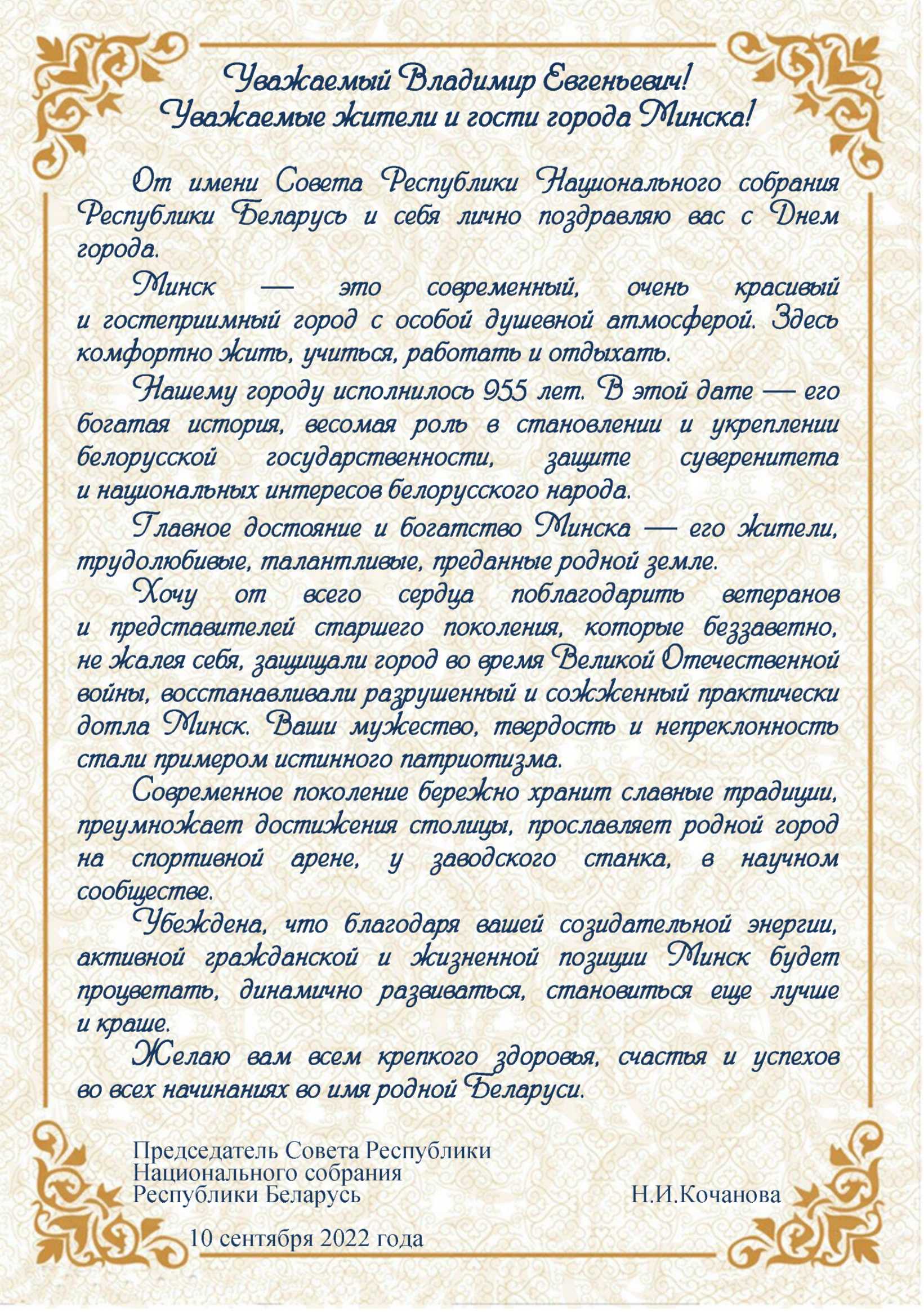 Председатель Совета Республики Н.Кочанова направила поздравления Председателю Совета Шуры Национальной ассамблеи Королевства Бахрейн