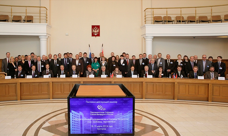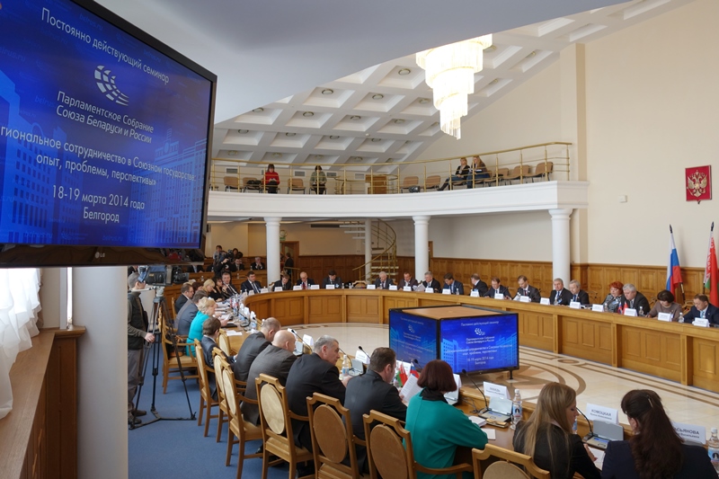 18 — 19 марта 2014 г. в Белгороде (Российская Федерация) прошло тридцать шестое заседание постоянно действующего при Парламентском Собрании Союза Беларуси и России (ПС) семинара по вопросам строительства Союзного государства на тему «Межрегиональное сотрудничество в Союзном государстве: опыт, проблемы, перспективы». Заседание провел Казаровец Николай Владимирович, председатель Постоянной комиссии Совета Республики Национального собрания Республики Беларусь по образованию, науке, культуре и социальному развитию, заместитель председателя Комиссии ПС по социальной политике, науке, культуре и гуманитарным вопросам. В семинаре участвовали также депутаты ПС, представители законодательных и исполнительных органов субъектов России и областей Беларуси, Постоянного Комитета Союзного государства, профильных министерств и ведомств, руководители промышленных и сельскохозяйственных предприятий.