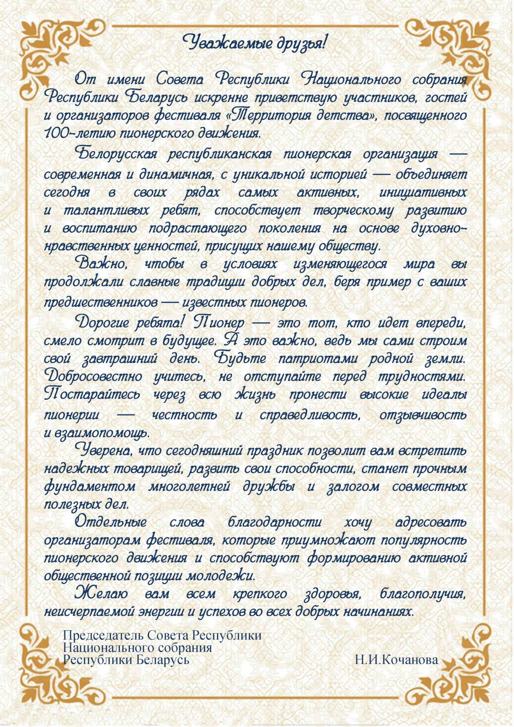 Участникам, гостям и организаторам фестиваля «Территория детства», посвященного 100-летию пионерского движения